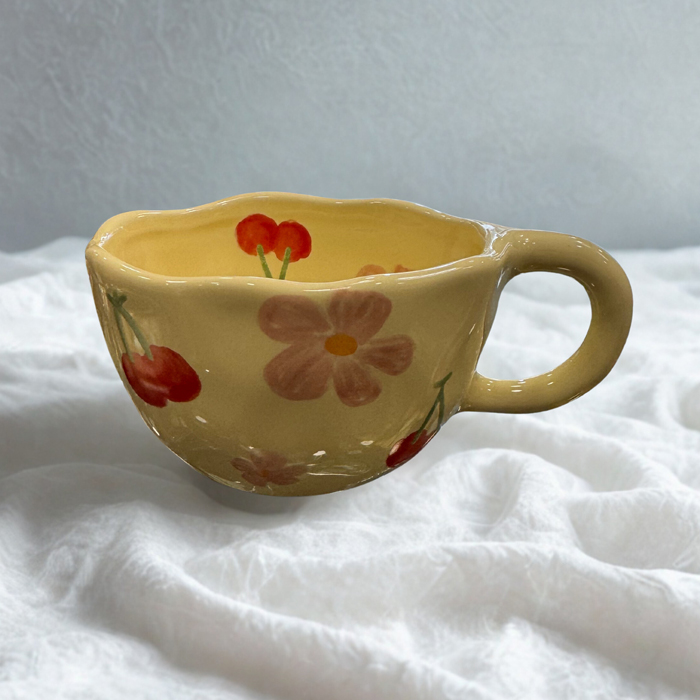 Χειροποίητο φλυτζάνι με σχέδια και μαργαριτάρια